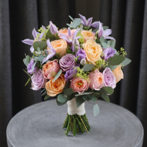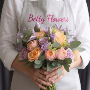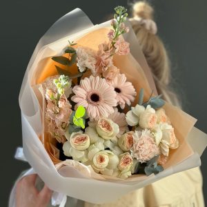 Buchet de flori „Peach Sorbet” cu Trandafiri Spray și Gerbera