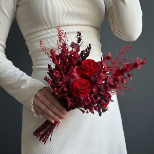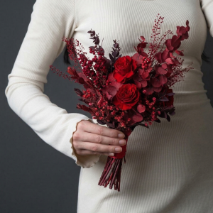 Buchet de Mireasă Pasiune Eternă – Flori Criogenate Roșu Burgund