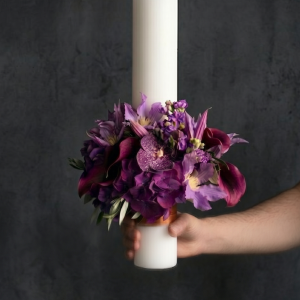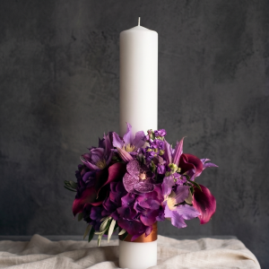 Lumânare de Cununie Floral Premium în Nuanțe de Violet și Grena