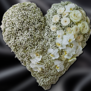 Coroana Funerara In Nunate De Mov Alb Din Trandafiri Si Orhidee