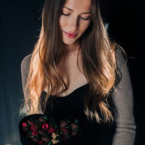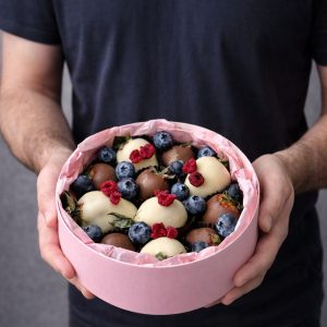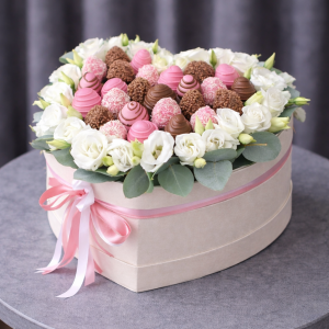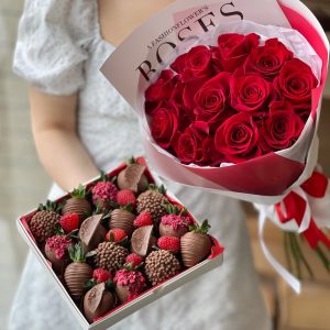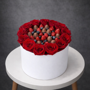 Cutie Elegantă cu Trandafiri, Orhidee și Căpșuni în Ciocolată