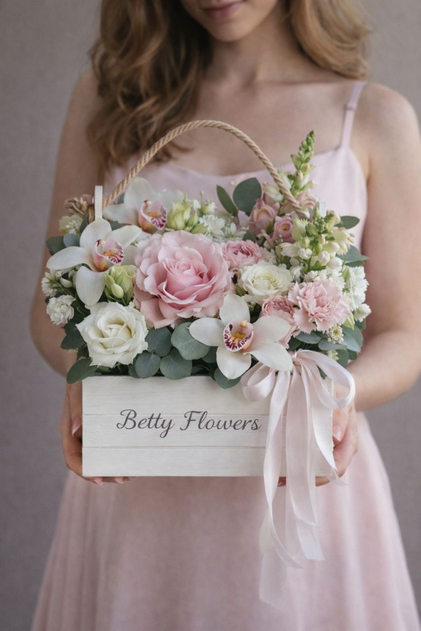 Descoperiți un aranjament floral elegant în ladita albă, perfect pentru a adăuga un strop de frumusețe oricărei ocazii. Acest aranjament exclusivist combină delicatețea orhideelor albe cu romantismul trandafirilor roz, creând un spectacol de culori și texturi care va captiva privirile.
