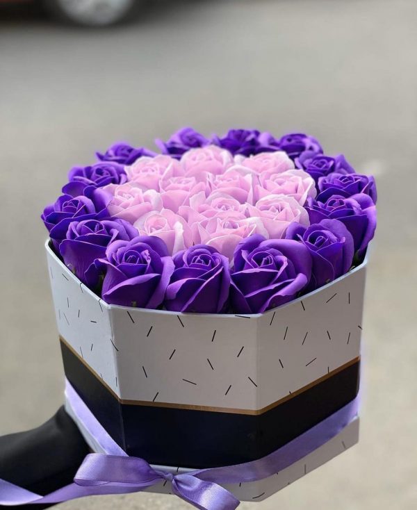 Un deosebit aranjament din trandafiri de sapun in 2 culori va impresiona garantat.