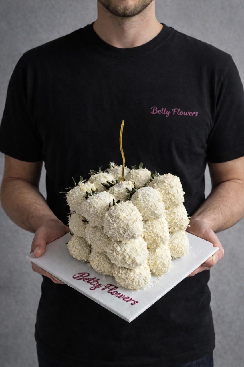 - Ciocolată albă belgiană: Fiecare căpșună este acoperită cu delicioasa ciocolată albă belgiană, cunoscută pentru textura sa fină și gustul intens.