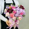 ranjament Floral Cu Flori Mixte În Nuanțe De Mov Și Roz