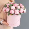 Acest aranjament este prezentat într-o cutie rotundă de nuanță crem, care oferă un fundal elegant și sofisticat, punând în evidență frumusețea florilor.