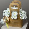 Aranjament Floral cu Margarete Albe în Cutie Tip Pungă – Frumusețe și Naturalețe într-o Prezentare Elegantă
