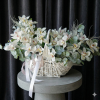 Aranjament Floral „Pastel Serenity” în Coș Alb – Eleganță și Prospețime