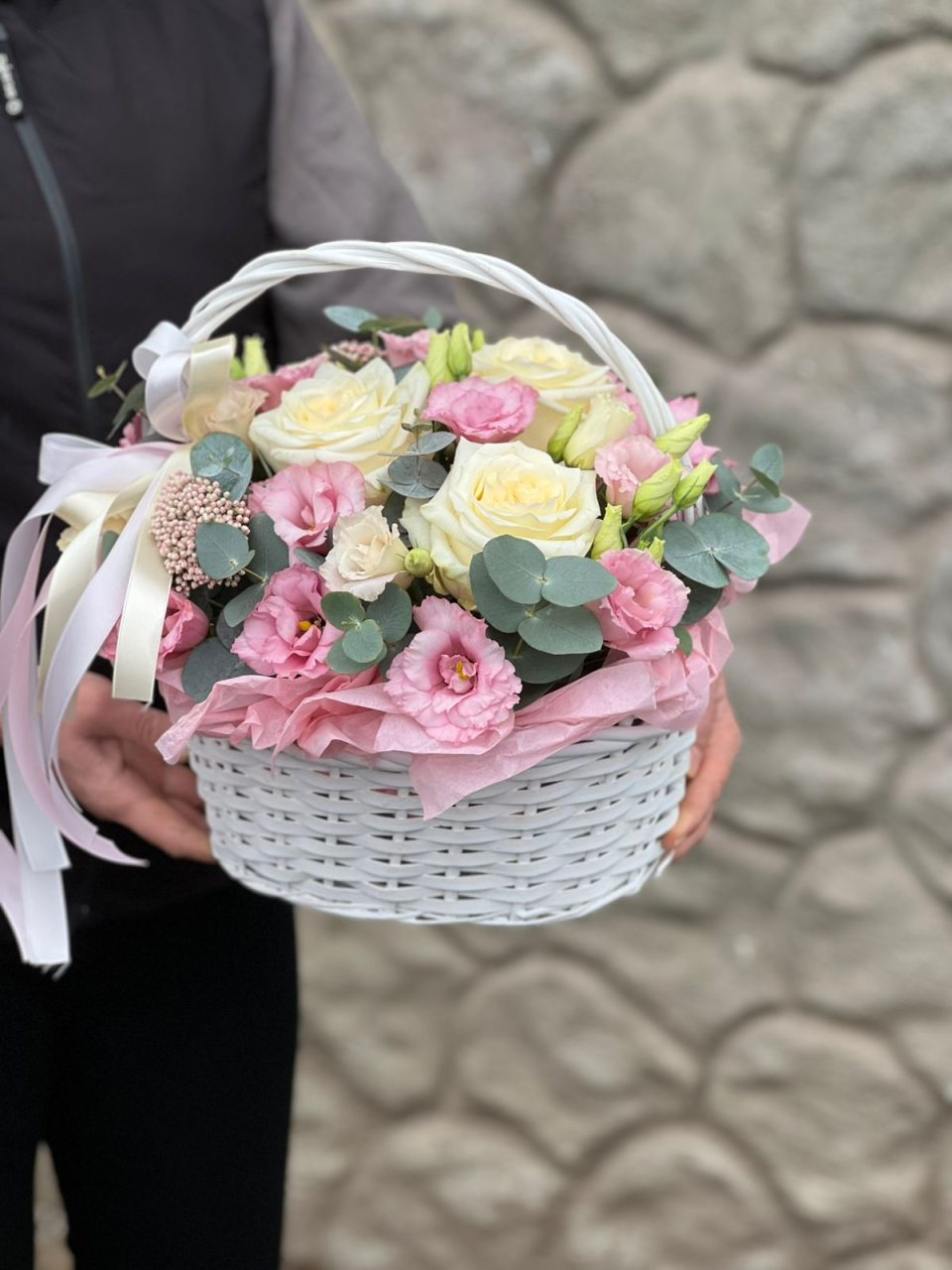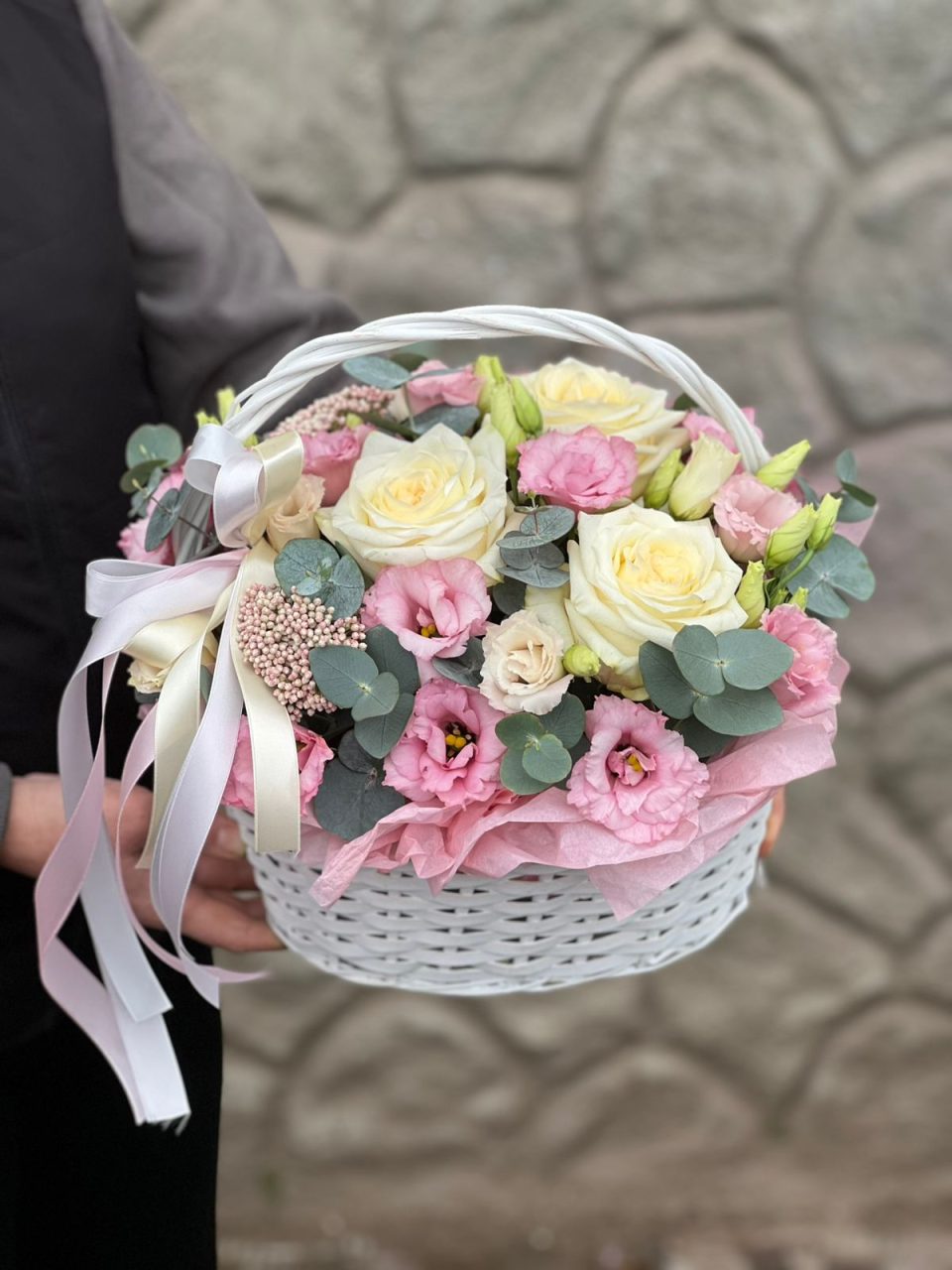 Transformă orice zi obișnuită într-un moment memorabil cu acest aranjament floral rafinat în coș. Creat special pentru persoanele care apreciază delicatețea și stilul clasic, acest ansamblu floral combină texturi variate și nuanțe pastelate de roz și crem, oferind un aspect vizual deosebit și un parfum discret.