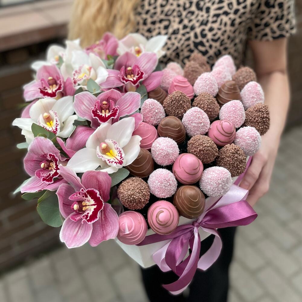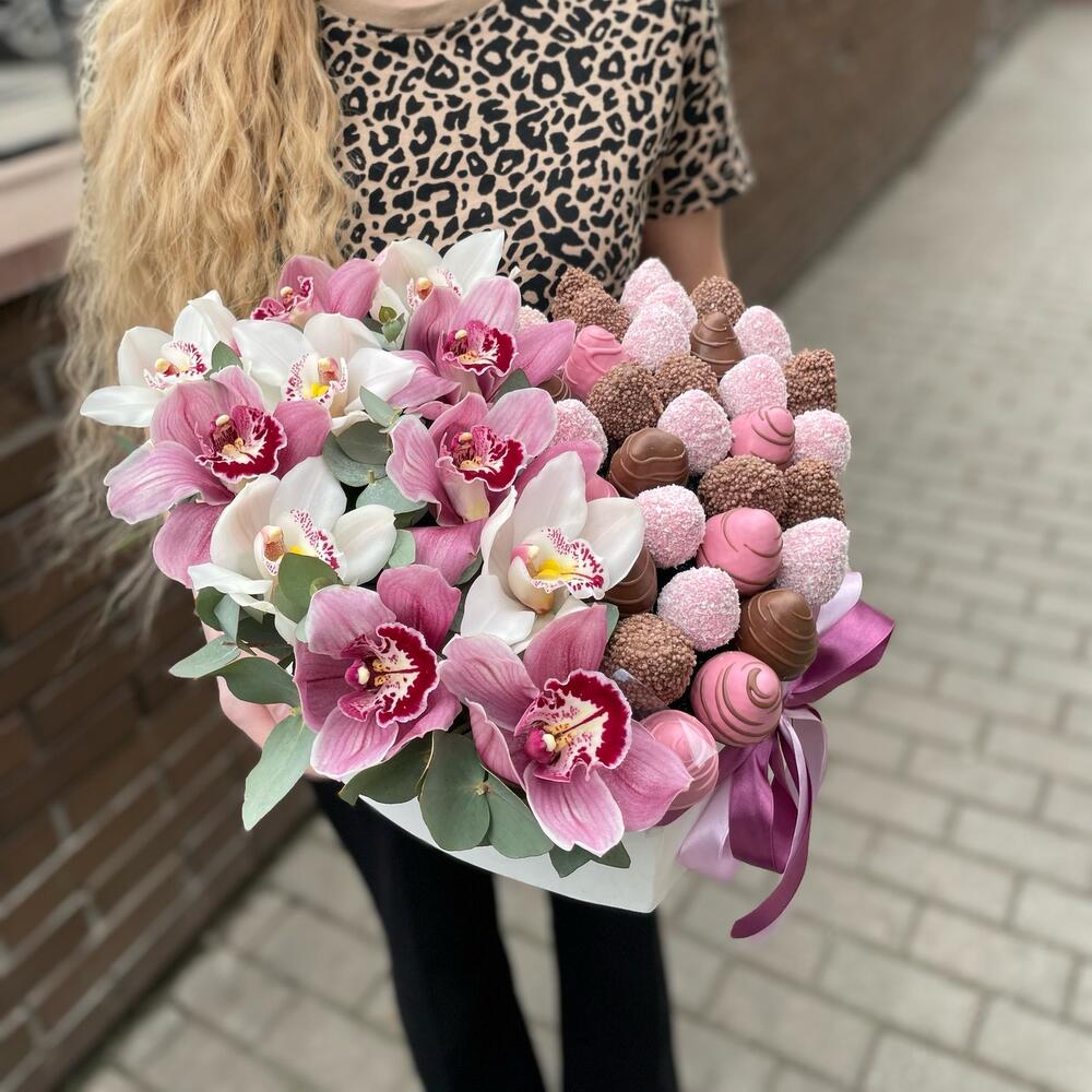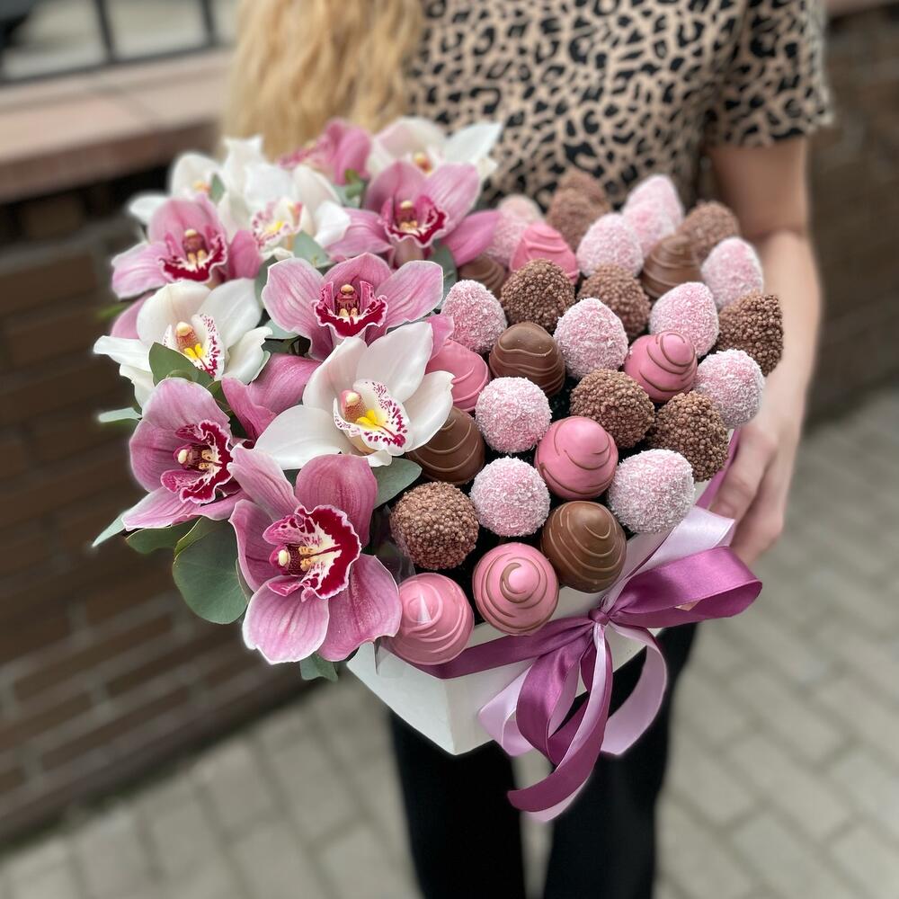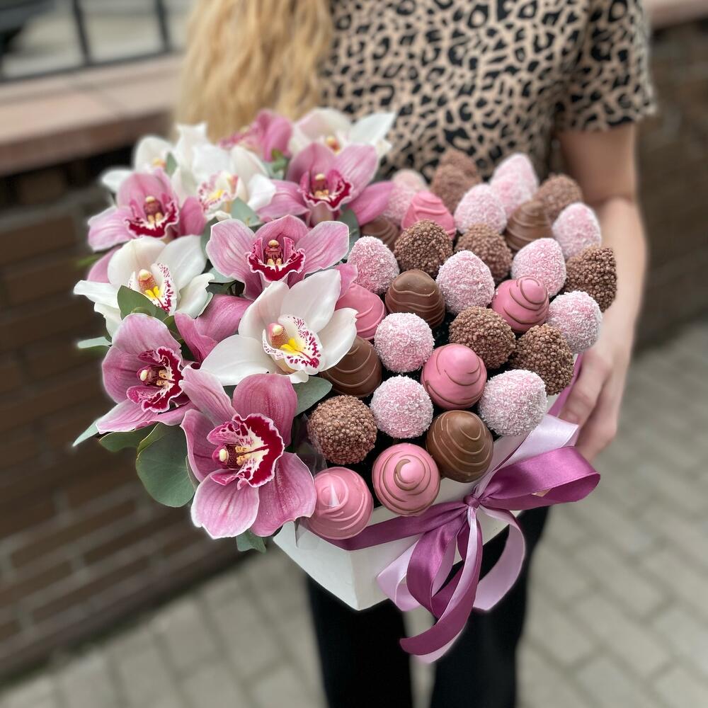 Alege acest aranjament inimă cu orhidee și căpșuni în ciocolată pentru a aduce zâmbete și bucurie celor dragi. Fie că este vorba despre o aniversare, o declarație de dragoste sau un gest plin de afecțiune, acest aranjament va impresiona cu siguranță. Transformă fiecare moment în unul special cu combinația perfectă de flori și delicii!