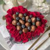 - Cutie în Formă de Inimă: Întregul aranjament este prezentat într-o cutie elegantă în nuanță de alb, în formă de inimă, care adaugă o notă de romantism și rafinament. Această cutie nu doar că protejează florile și căpșunile, dar și creează un cadou memorabil, perfect pentru orice ocazie specială.