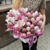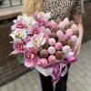 Descriere produs: Aranjament Inimă cu Orhidee și Căpșuni în Ciocolată