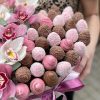 - Căpșuni în Ciocolată Belgiană: Acest aranjament este completat cu 700 g de căpșuni în ciocolată belgiană, delicatețe care va răsfăța papilele gustative. Căpșunile sunt acoperite în trei nuanțe de ciocolată, aducând un contrast plăcut și atrăgător, ideal pentru cei care apreciază dulciurile fine.