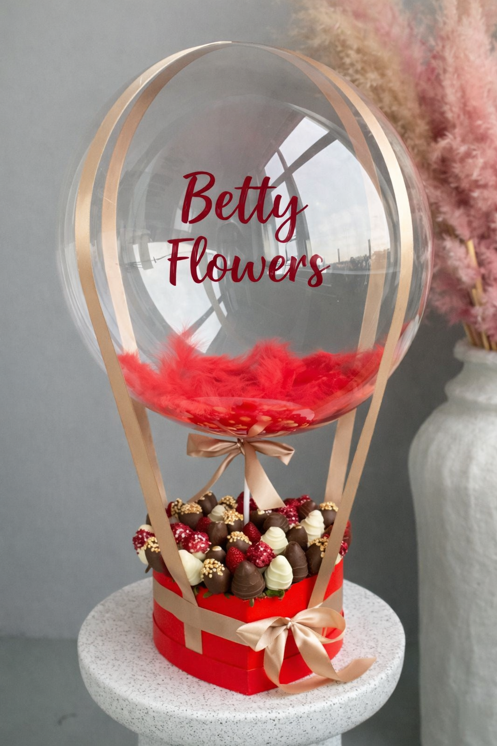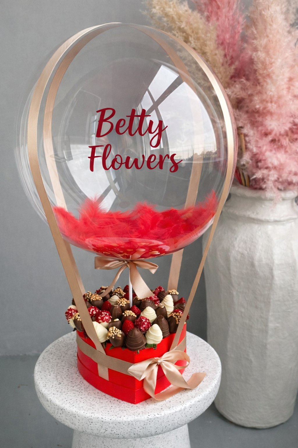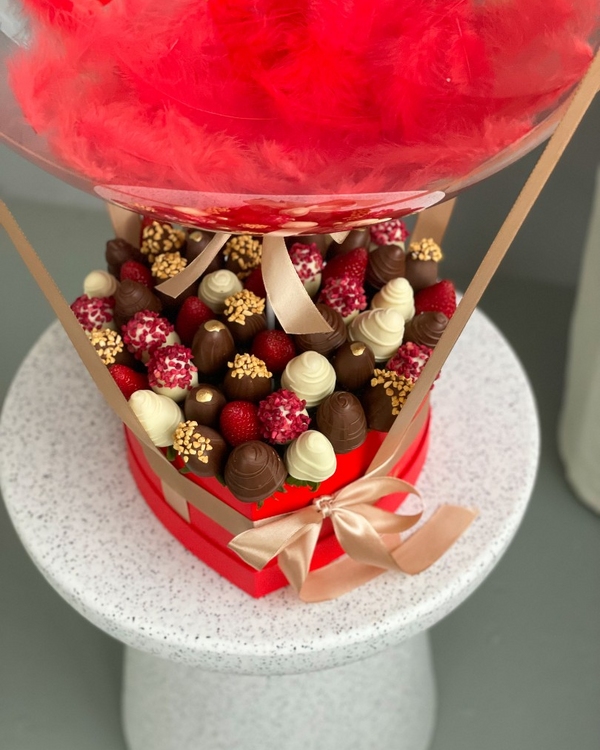 Surprinde persoana iubită cu un aranjament spectaculos și elegant, perfect pentru aniversări, Valentine’s Day sau declarații speciale de dragoste. Acest cadou premium îmbină rafinamentul unui balon transparent cu delicatețea unei cutii în formă de inimă plină cu căpșuni proaspete învelite în ciocolată belgiană.