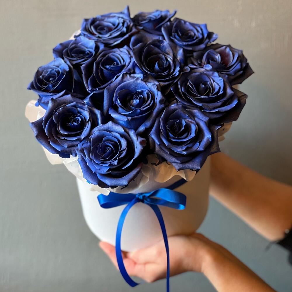 Fiecare floare din acest aranjament este selecționată cu grijă și atentie, astfel încât să ofere o experiență vizuală deosebită. Trandafirii albaștri reprezintă eleganță, mister și pasiune și vor captiva privirile tuturor celor care se vor afla în preajma lor. Fiind asociată cu noutatea și originalitatea, această tonalitate de albastru va aduce o notă de proaspătă în decorul oricărui spațiu.