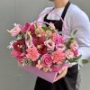 Îmbogățește-ți zilele cu acest aranjament floral superb, perfect pentru a adăuga un strop de frumusețe și delicatețe în orice moment special. Prezentat într-o cutie tip pungă în nuanțe de roz, acest aranjament conține o selecție variată de flori care vor încânta privirile și vor aduce bucurie celor dragi.