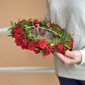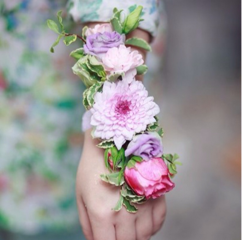 Corsaj din trandafiri roz crizantema ,mine rose verdeata decorativa