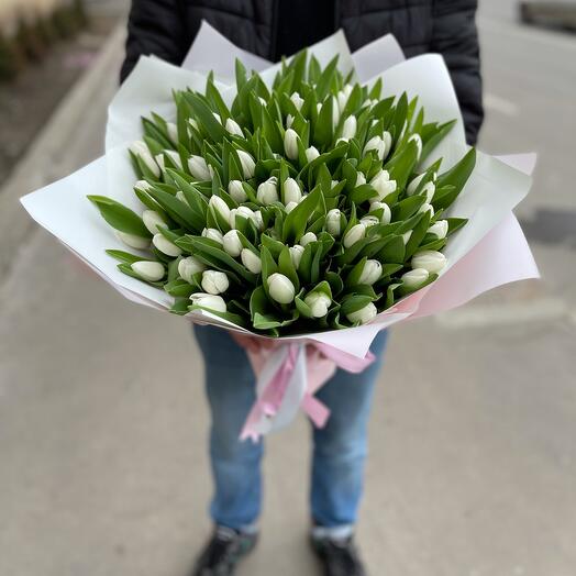 Cu un total de 101 lalele albe proaspete și strălucitoare, acest buchet este o adevărată operă de artă florală. Fiecare floare este atent selecționată și aranjată cu grijă pentru a crea un aspect impresionant și elegant. Lalelele albe simbolizează puritatea și inocența, iar această combinație de delicatețe și frumusețe este perfectă pentru a transmite un mesaj de iubire și respect.
