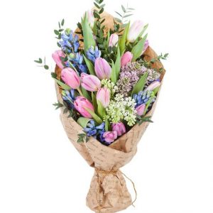 - Ambalaj: Buchetul este elegant ambalat în hârtie tip ziar, ceea ce îi conferă un aspect rustic și modern în același timp. Acest tip de ambalaj nu doar că protejează florile, dar adaugă și o notă de originalitate și creativitate, transformând buchetul într-un cadou memorabil.