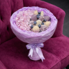Aranjamentul conține 10 căpșuni proaspete învelite în ciocolată fină, decorate atent pentru un aspect rafinat, alături de 3 hortensii mov bogate, care oferă volum și un impact vizual deosebit. Buchetul este realizat în ambalaj mov elegant, în ton perfect cu florile, pentru un efect sofisticat și armonios.