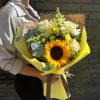 Încântător și plin de energie, acest buchet cu floarea soarelui și flori albe este alegerea perfectă pentru orice ocazie specială. Bucură-te de combinația vibrantă și delicată, care aduce împreună florile simbolice ale soarelui și eleganța florilor albe.