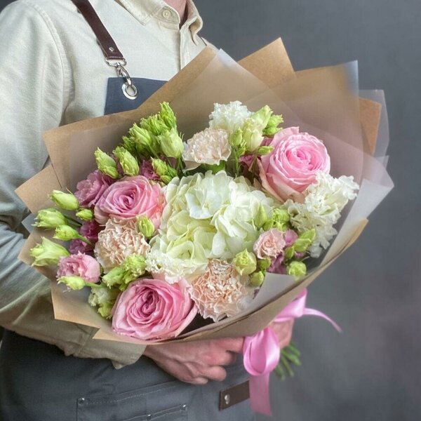 - Design sofisticat: Combinația de hortensie albă, trandafiri roz și flori delicate este perfectă pentru a impresiona, fiind o alegere excelentă pentru orice ocazie.