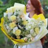 - Ambalaj: Buchetul este elegant ambalat într-un ambalaj alb, care accentuează frumusețea florilor și conferă o notă de rafinament.