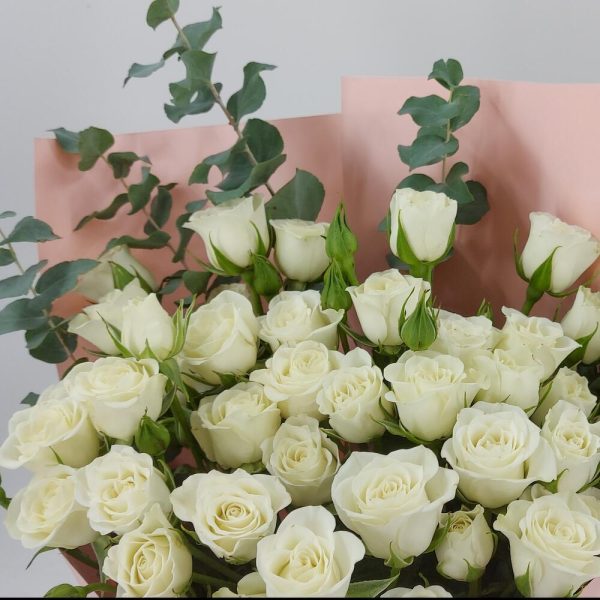- 3 Fire de Eucalipt: Frunzele de eucalipt adaugă o notă de verdeață și prospețime, completând buchetul cu un aspect natural și vibrant. Eucaliptul este cunoscut pentru aroma sa plăcută și calitățile sale calmante, aducând echilibru și armonie în aranjament.