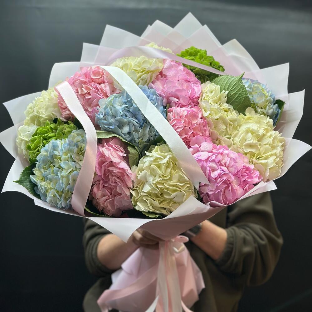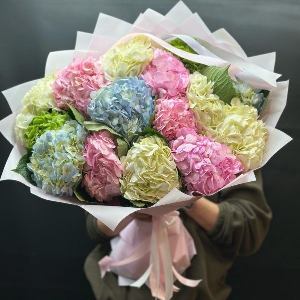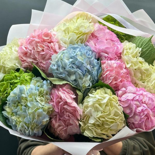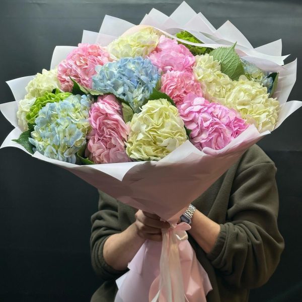 Îmbogățiți-vă momentul cu acest buchet spectaculos din 15 fire de hortensii de diverse culori! Cu o înălțime de 50 cm și un diametru de 60 cm, acest aranjament floral aduce un strop de frumusețe în orice spațiu. Ambalajul deschis îți permite să te bucuri de splendoarea culorilor vibrante. Comandă acum și asigură-ți livrarea cu 24 de ore înainte! Un cadou perfect pentru orice ocazie!
