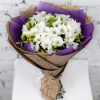 Fie că doriți să îl oferiți cadou sau să-l adăugați în decorul casei dumneavoastră, acest aranjament floral se va integra armonios în orice mediu datorită nuanțelor sale pure. În plus, buchetul este elegant ambalat într-un stil inedit, folosind hârtie tip ziar, ceea ce îi conferă un aspect vintage și original.