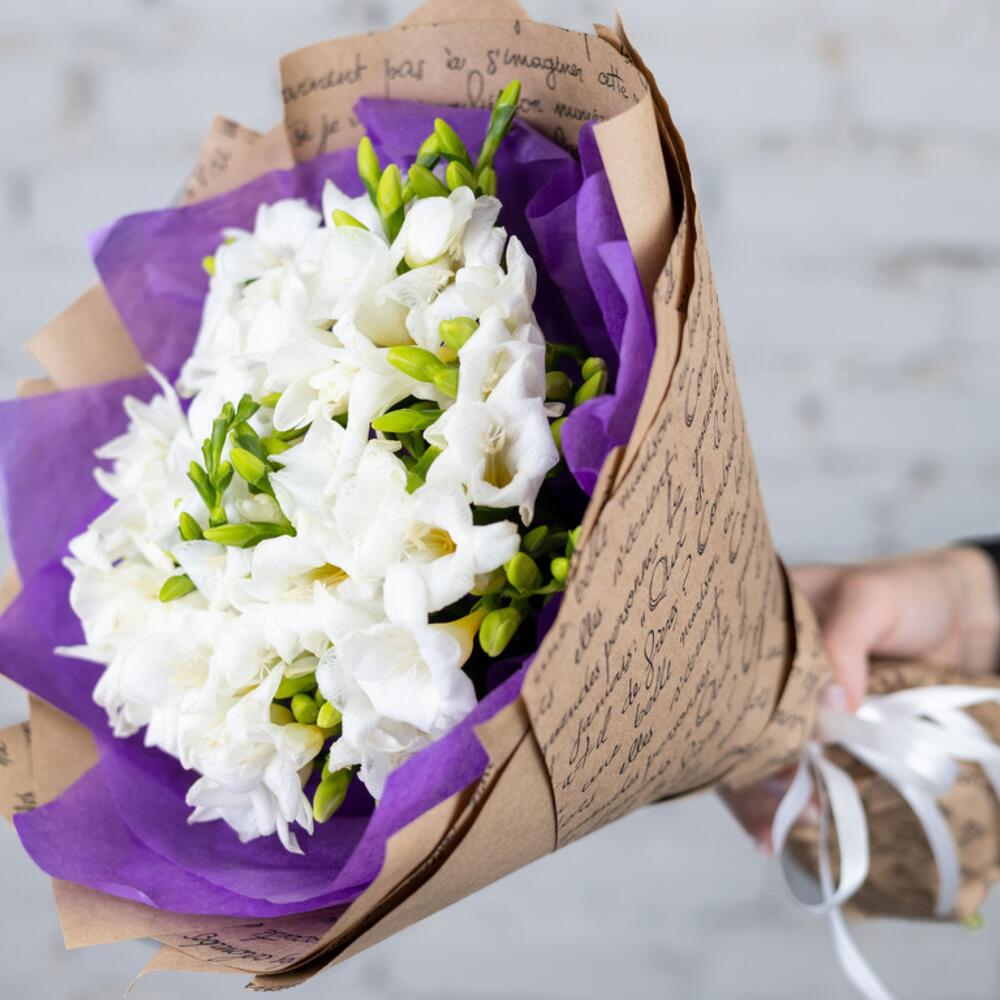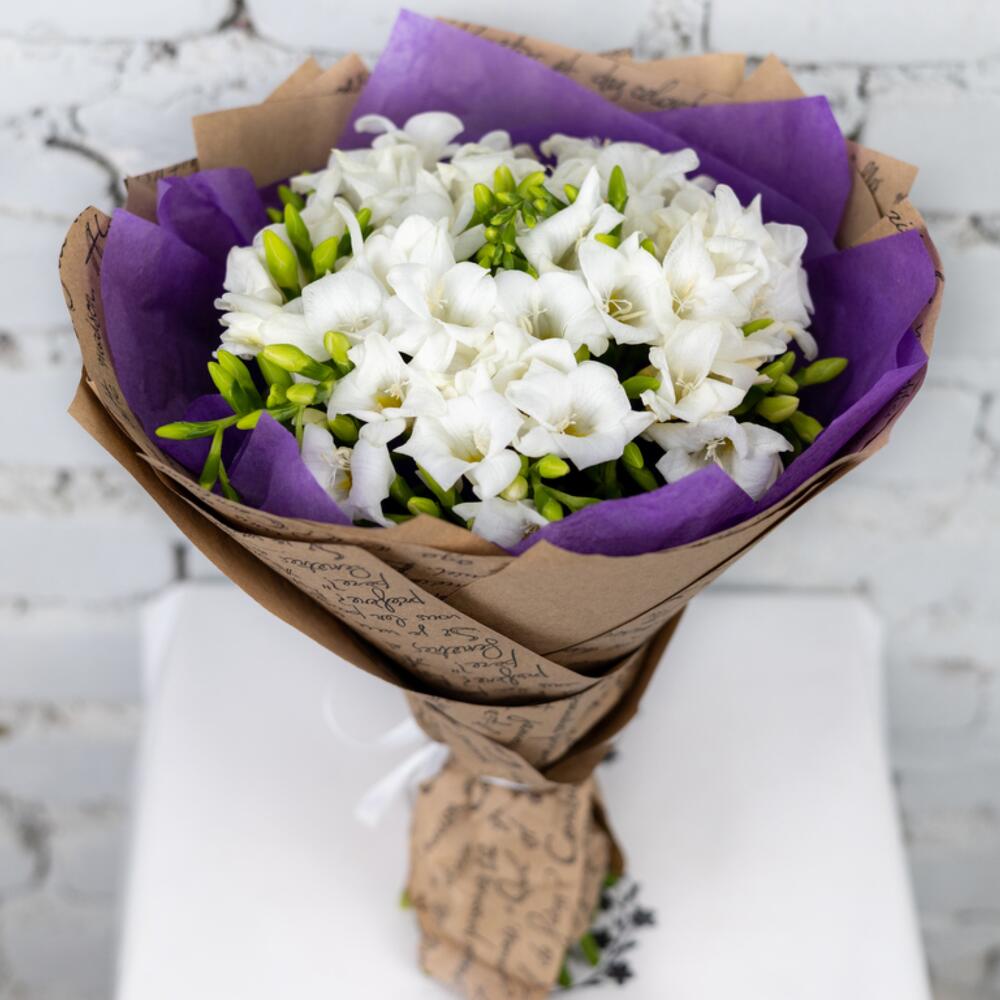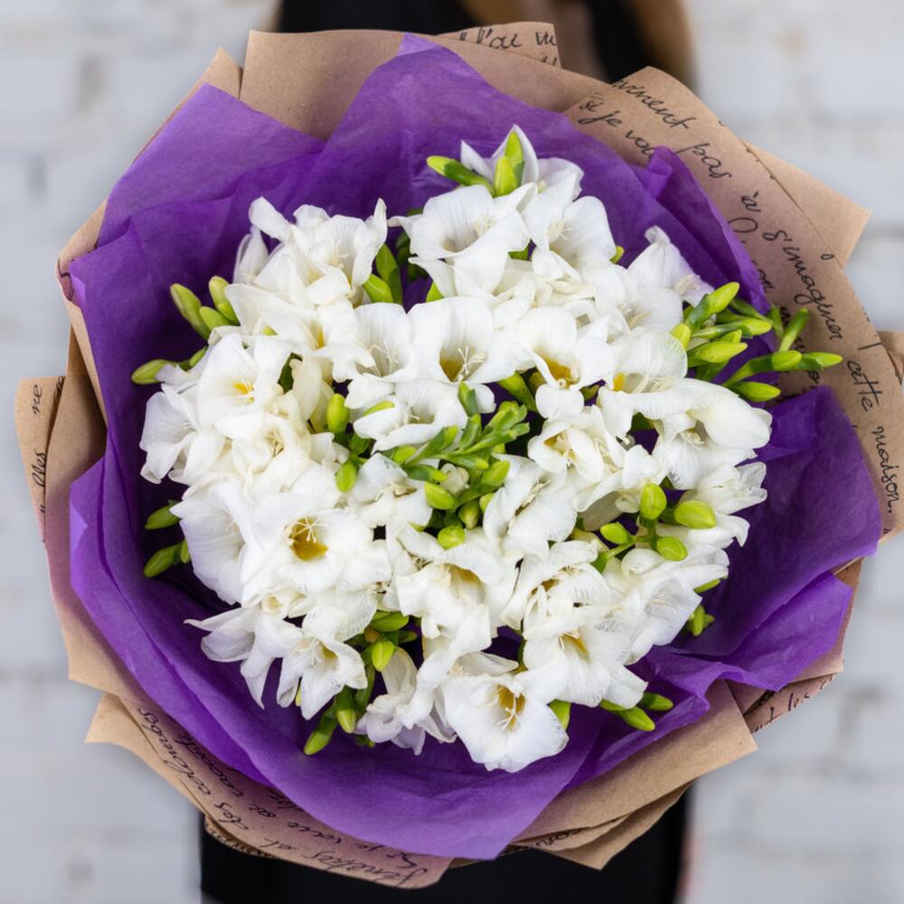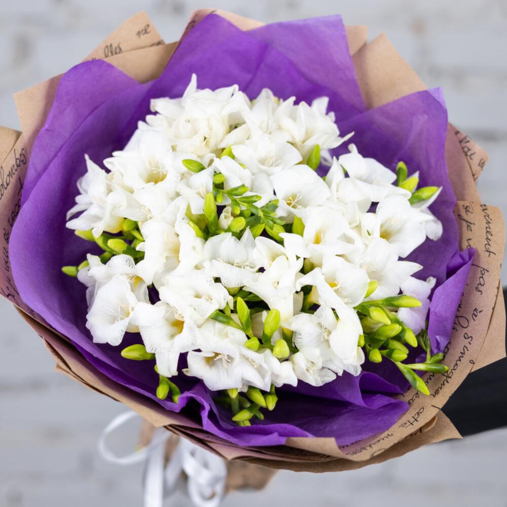 Împodobiți-vă ziua cu un strop de eleganță și prospețime! Vă prezentăm Buchetul din 25 de Frezii Albe, o alegere perfectă pentru a aduce bucurie în fiecare moment. Acest buchet de flori de primăvară este o explozie de delicatețe, având 25 de fire de frezii albe, cunoscute pentru frumusețea și parfumurile lor îmbietoare.