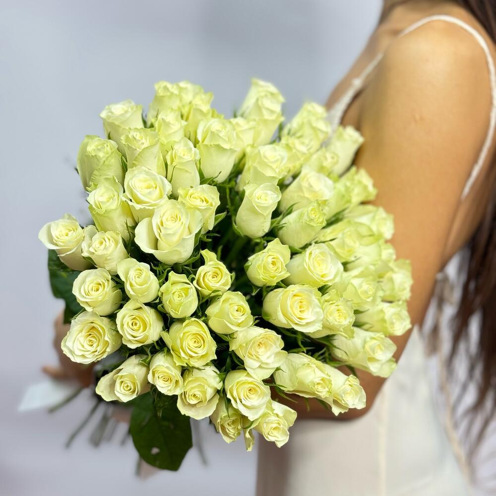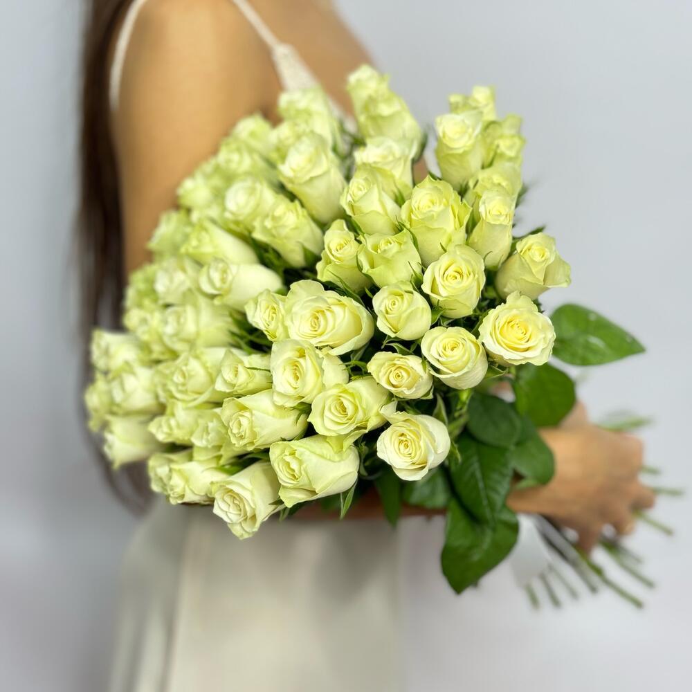 Încântați-vă persoana iubită cu acest superb buchet din 51 trandafiri albi, având o înălțime de 50 cm. Nuantele delicate de alb simbolizează puritatea și dragostea sinceră, iar fundița albă care le leagă oferă un plus de eleganță. Perfect pentru orice ocazie specială, acest buchet poate fi comandat simplu și rapid, fie online, fie telefonic. Alegeți să aduceți zâmbete și bucurie prin acest cadou floral deosebit! Comandați acum!