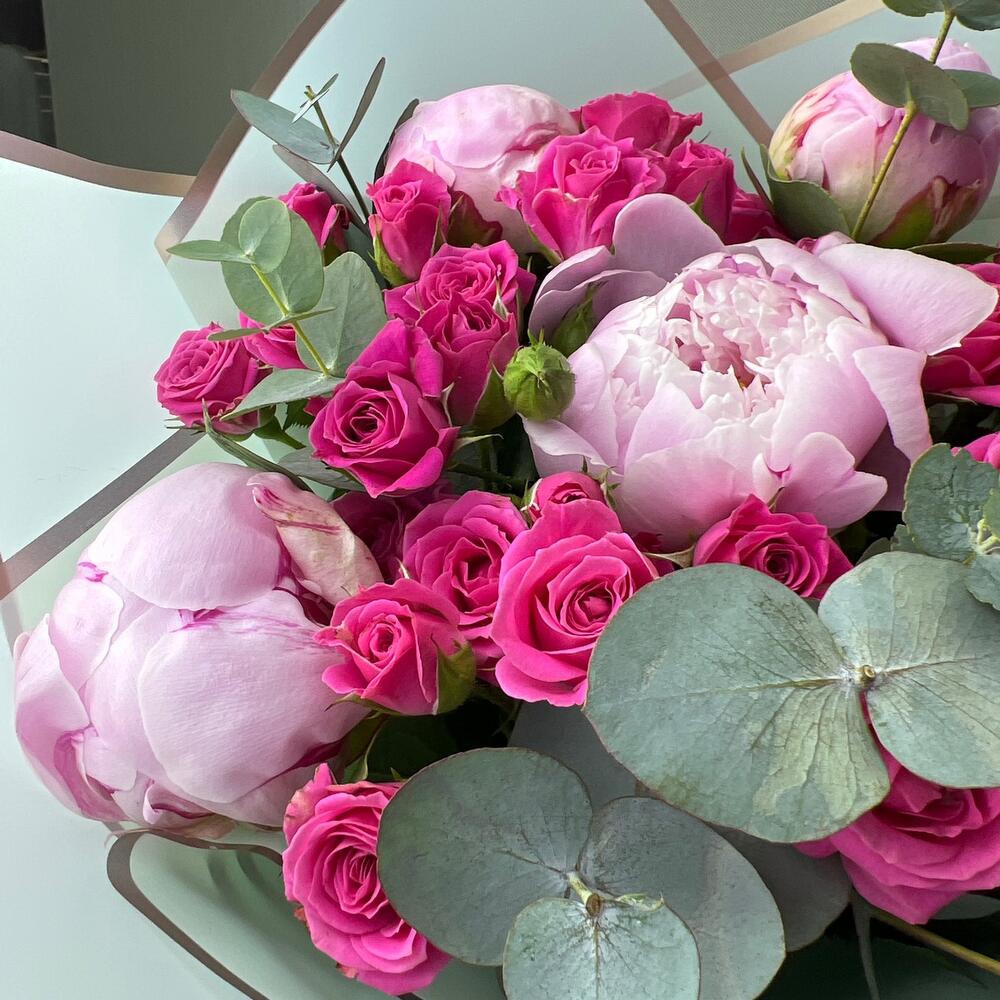 Buchet Din Bujori Roz St Trandafiri Tros Ciclam