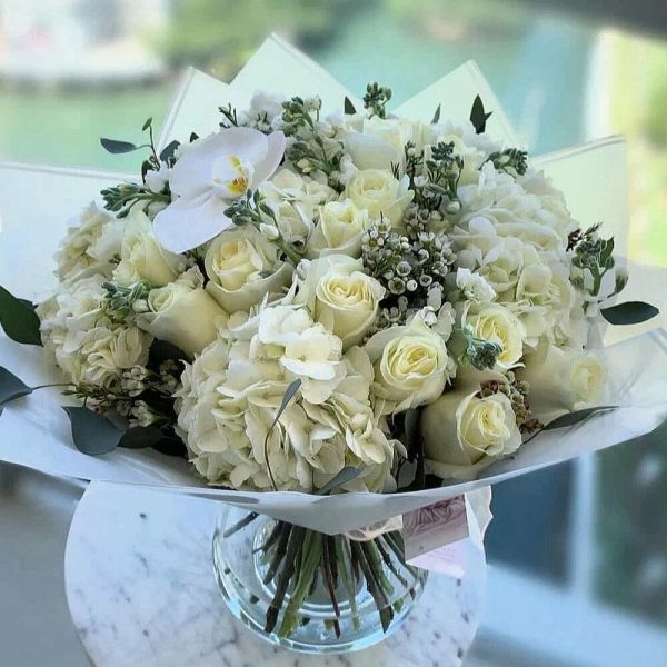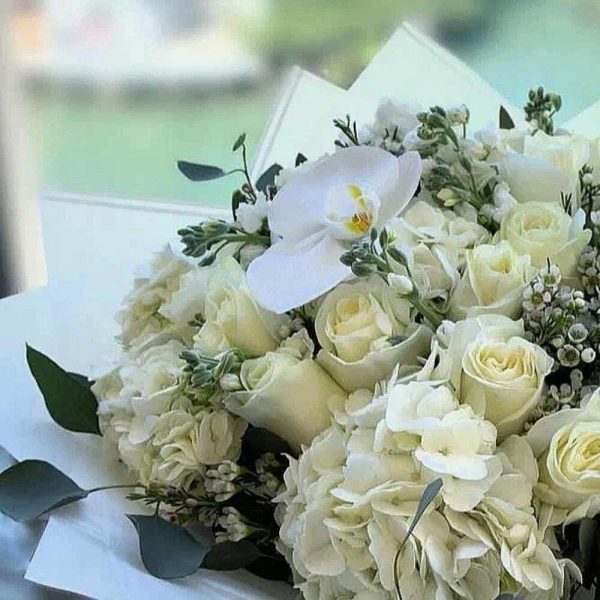 Buchet Din Hortensie Alba Si Trandafiri Albi