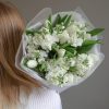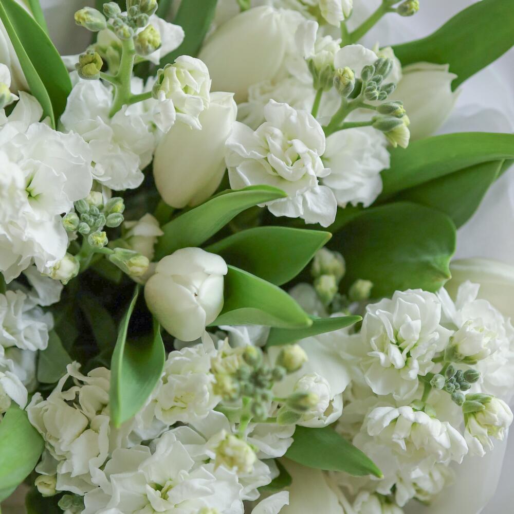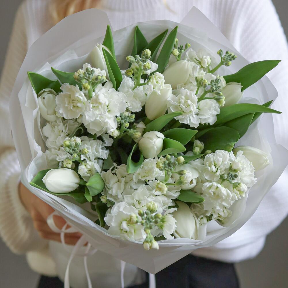 Încântați-vă simțurile cu un buchet elegant, în nuanțe delicate de alb! Acest buchet rafinat conține 10 flori de lalele albe și 9 fire de matthiola alba, perfect pentru a adăuga un strop de primăvară oricărei încăperi. Ambalat cu grijă în hârtie albă, este cadoul ideal pentru ocazii speciale sau pentru a aduce bucurie în viața celor dragi. Alegeți frumusețea pură a acestor flori și transformați orice moment într-unul memorabil!