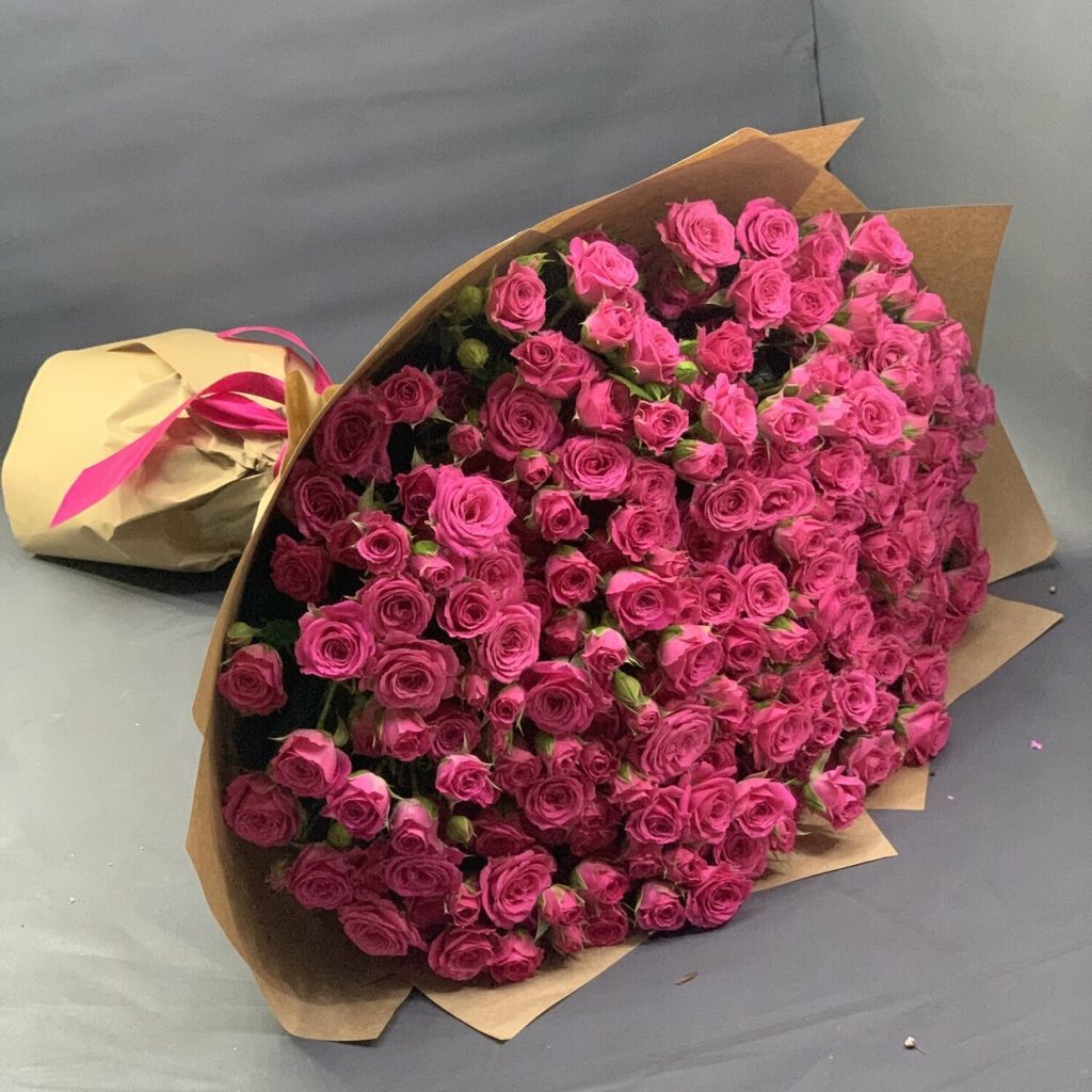 Încântă-ți simțurile și adaugă o notă de eleganță oricărei ocazii cu buchetul nostru de mini trandafiri roz ciclam! Acest aranjament floral este compus din 51 de fire delicate, fiecare emanând frumusețe și prospețime. Culoarea vibrantă a trandafirilor, un ciclam captivant, va aduce un strop de bucurie și optimism în viața ta sau a celor dragi.