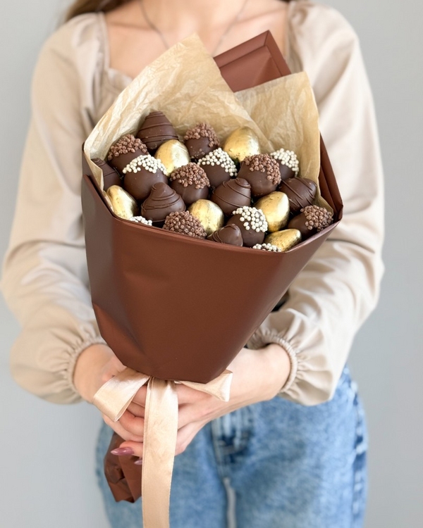 Buchetul din 25 de căpșuni proaspete în ciocolată cu lapte este alegerea perfectă pentru un cadou dulce, elegant și rafinat. Fiecare căpșună este atent selecționată și îmbrăcată în ciocolată fină cu lapte, apoi decorată cu elemente comestibile premium pentru un aspect spectaculos și un gust desăvârșit.