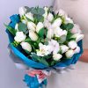 Buchet Floral Alb Cu Lalele, Frezii si Bumbac
