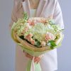 Ambalajul în nuanțe de alb oferă o notă de finețe, accentuând frumusețea florilor și făcând din acest buchet alegerea ideală pentru zile de naștere, aniversări sau ca gest de apreciere față de o persoană dragă.