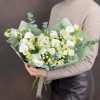 Descriere produs: Buchet în Nuțe de Alb din Eustome Albe și Alstroemerie