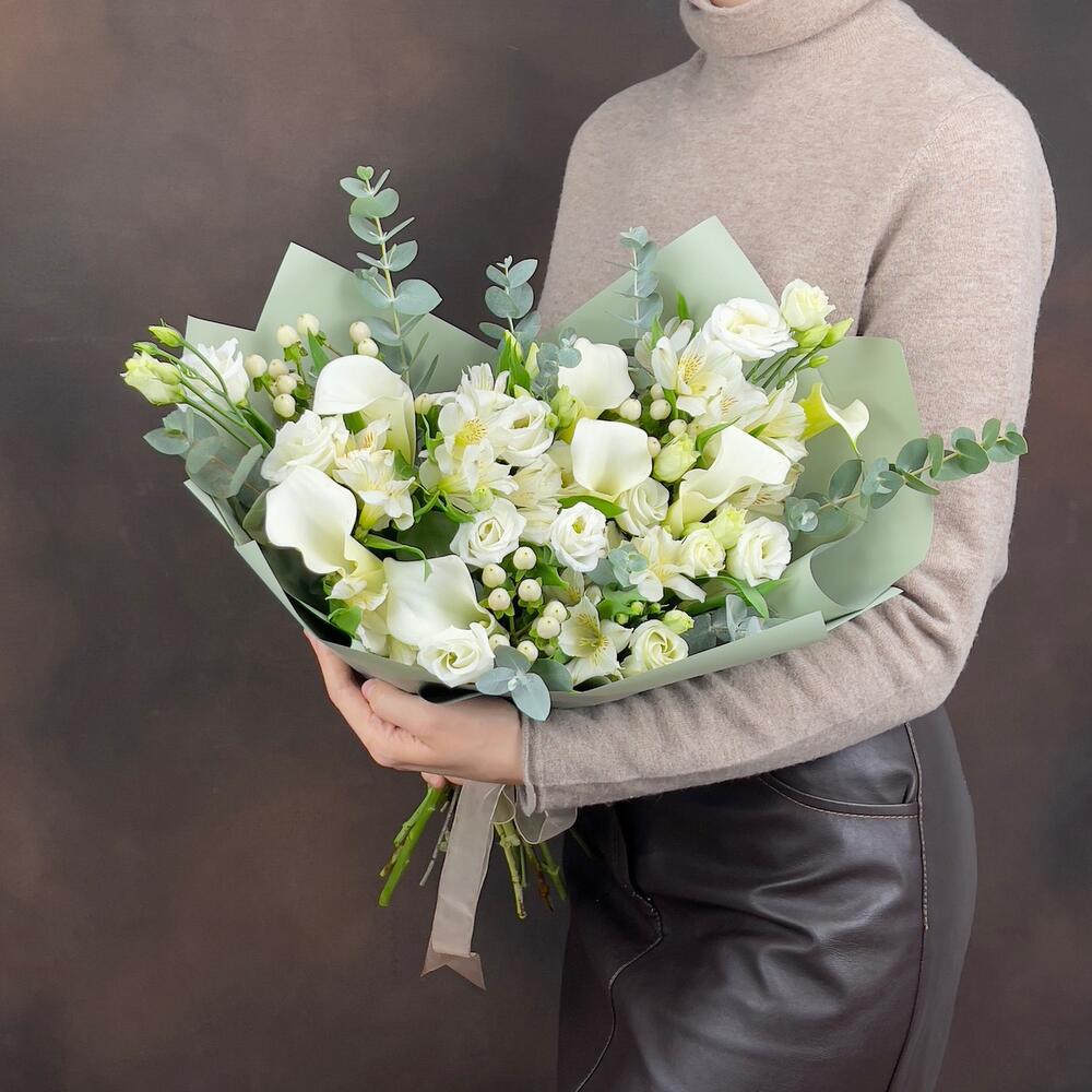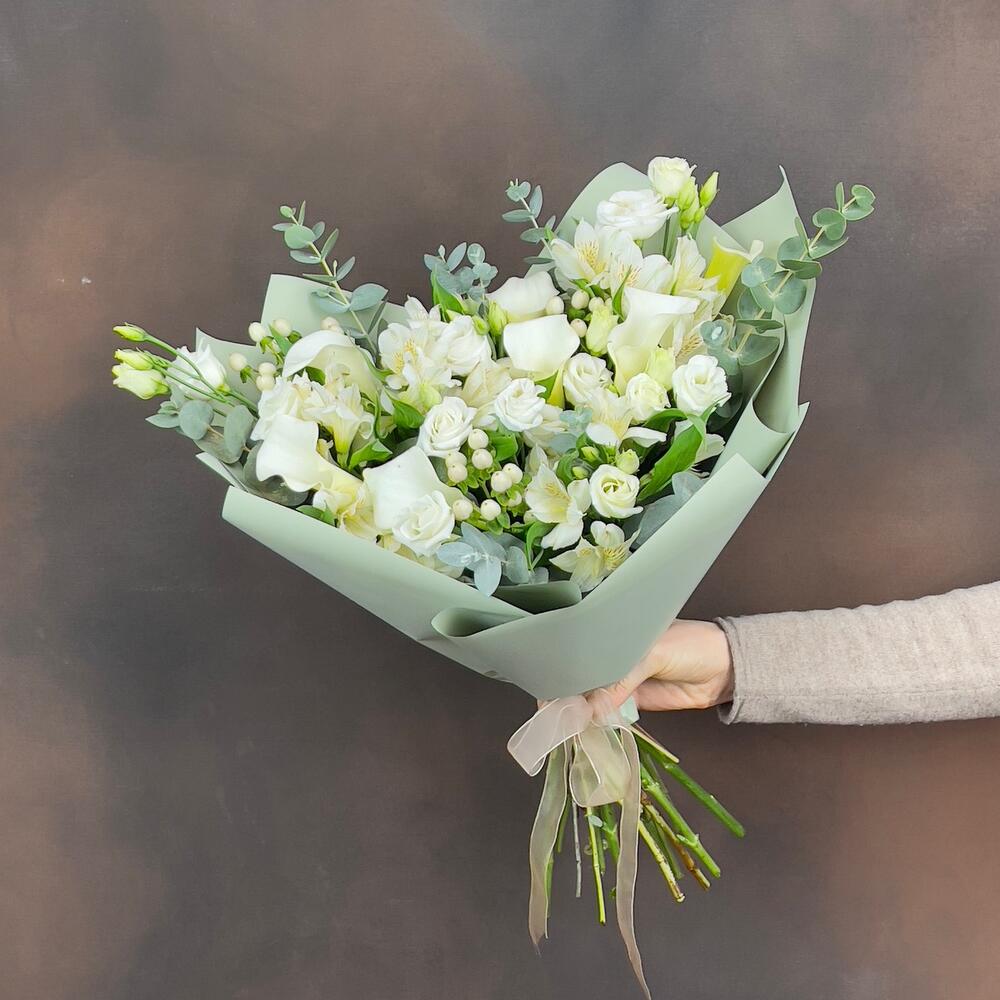 Acest buchet din eustome albe, alstroemerie, hipericum și cale albe este ideal pentru aniversări, zile de naștere, nunți sau ca un cadou special pentru a aduce bucurie și frumusețe în viața cuiva drag. Alegeți acest aranjament floral pentru a transmite emoții sincere și a crea amintiri de neuitat!