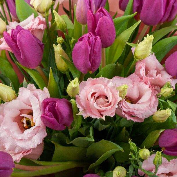 Fie că dorești să faci o surpriză unei persoane speciale, să decorezi un eveniment sau pur și simplu să îți înfrumusețezi casa, acest buchet de flori de primăvară este alegerea ideală. Cu un aspect plin de viață și culori armonioase, Buchetul Lalele Mov și Eustome Roz va captiva privirile și va aduce bucurie în orice spațiu.