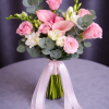Buchet Mireasă Delicat cu Cale, Frezii și Lisianthus este alegerea perfectă pentru o mireasă care își dorește un buchet elegant, romantic și rafinat. Nuanțele pastel de roz și alb creează un efect diafan și luminos, ideal pentru nunți moderne sau clasice.