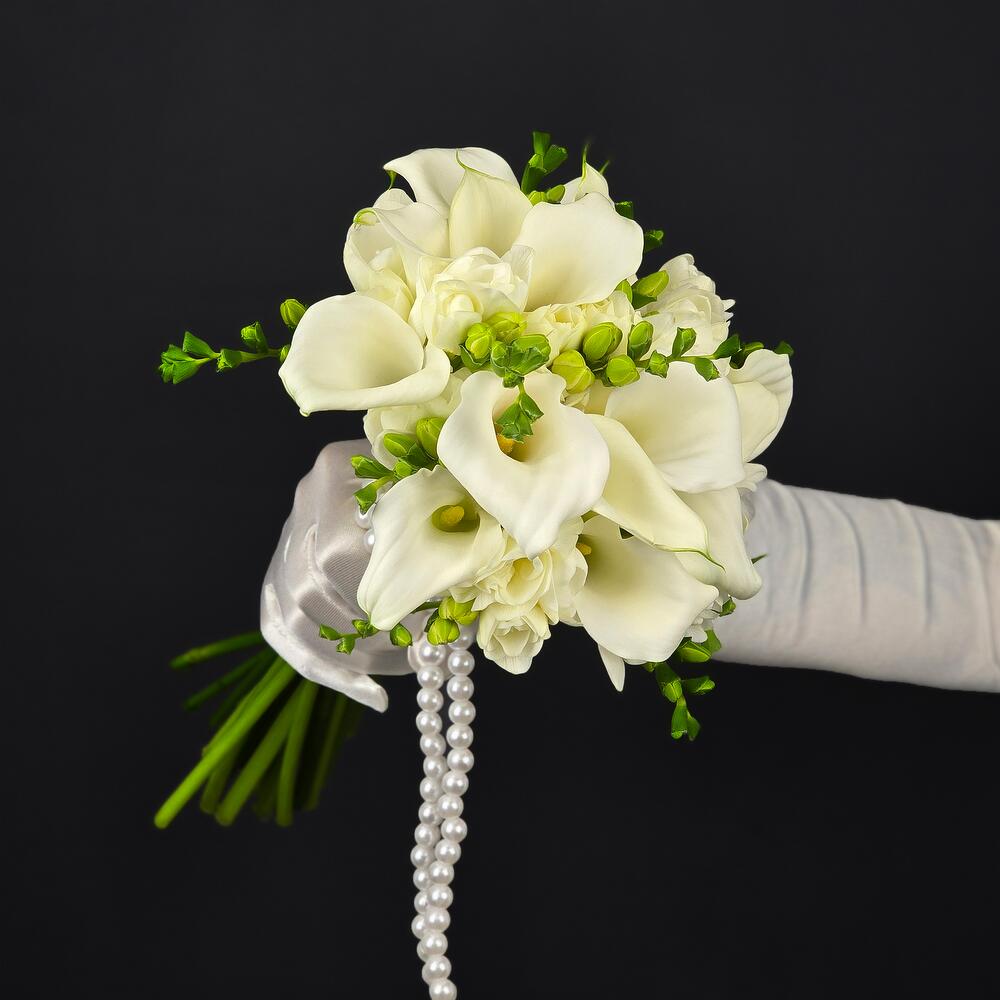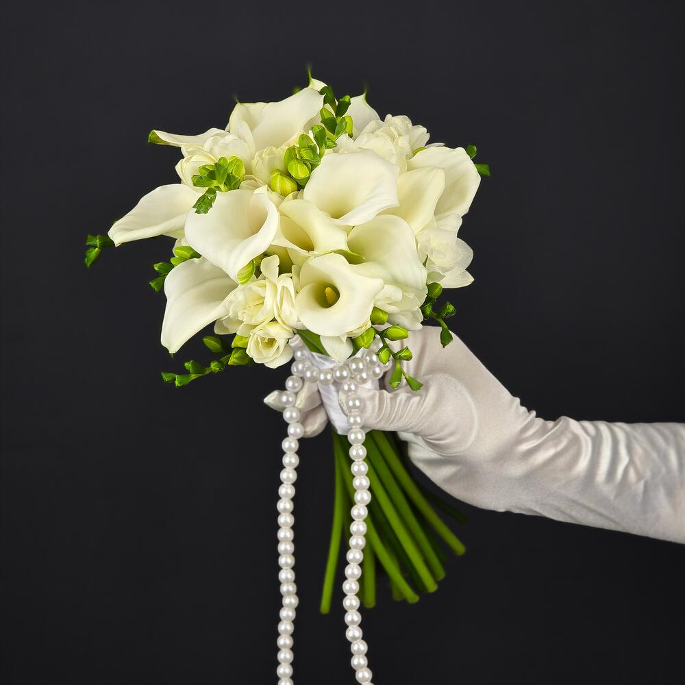 Îmbogățiți-vă ziua cea mare cu acest buchet de mireasă elegant și rafinat, care reflectă frumusețea și pura emoție a iubirii. Construit din flori de cea mai bună calitate, acest buchet este perfect pentru a completa rochia de mireasă și a adăuga un strop de magie ceremoniei.