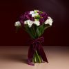 Buchet compus din mix flori de sezon, diferite culori si texturi, cu insert de verdeata, ambalat in hartie in ton si livrat