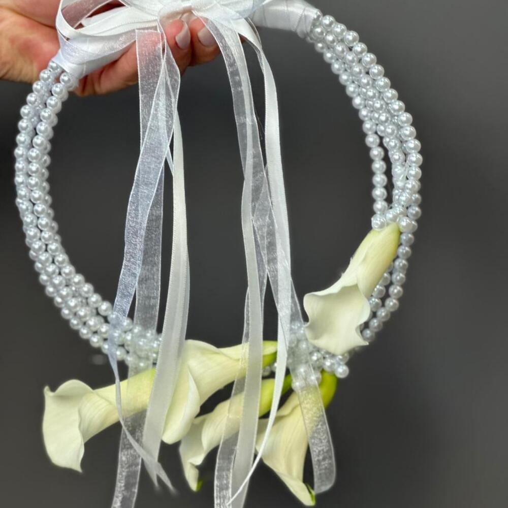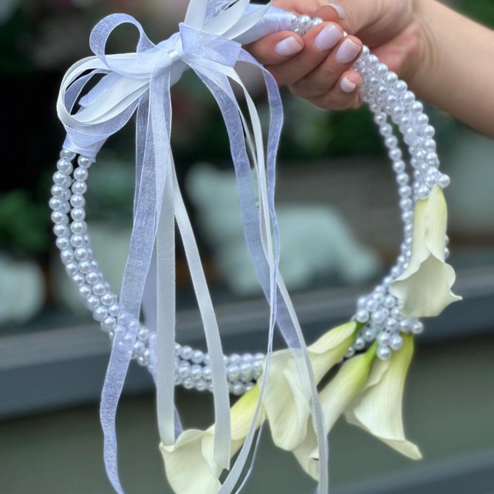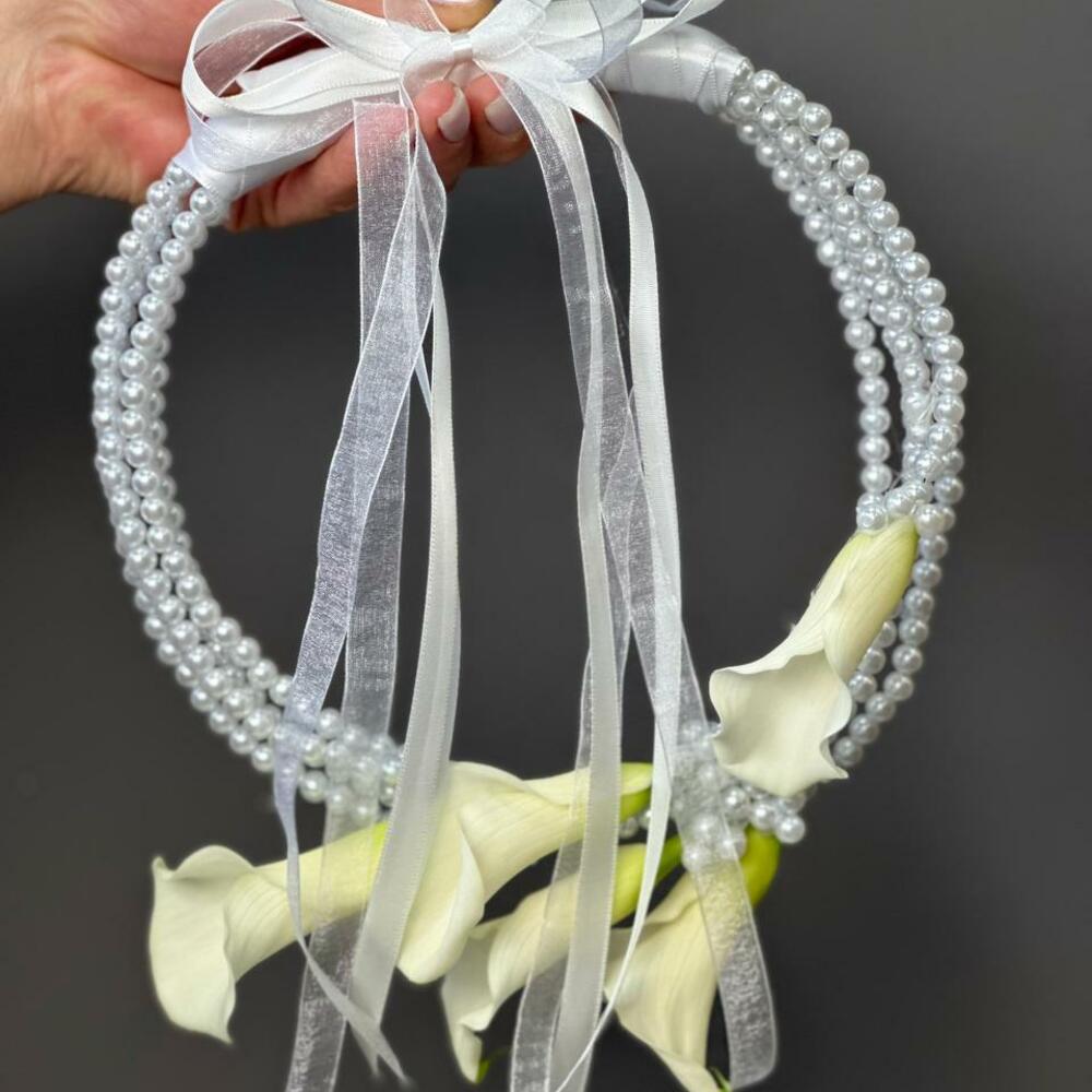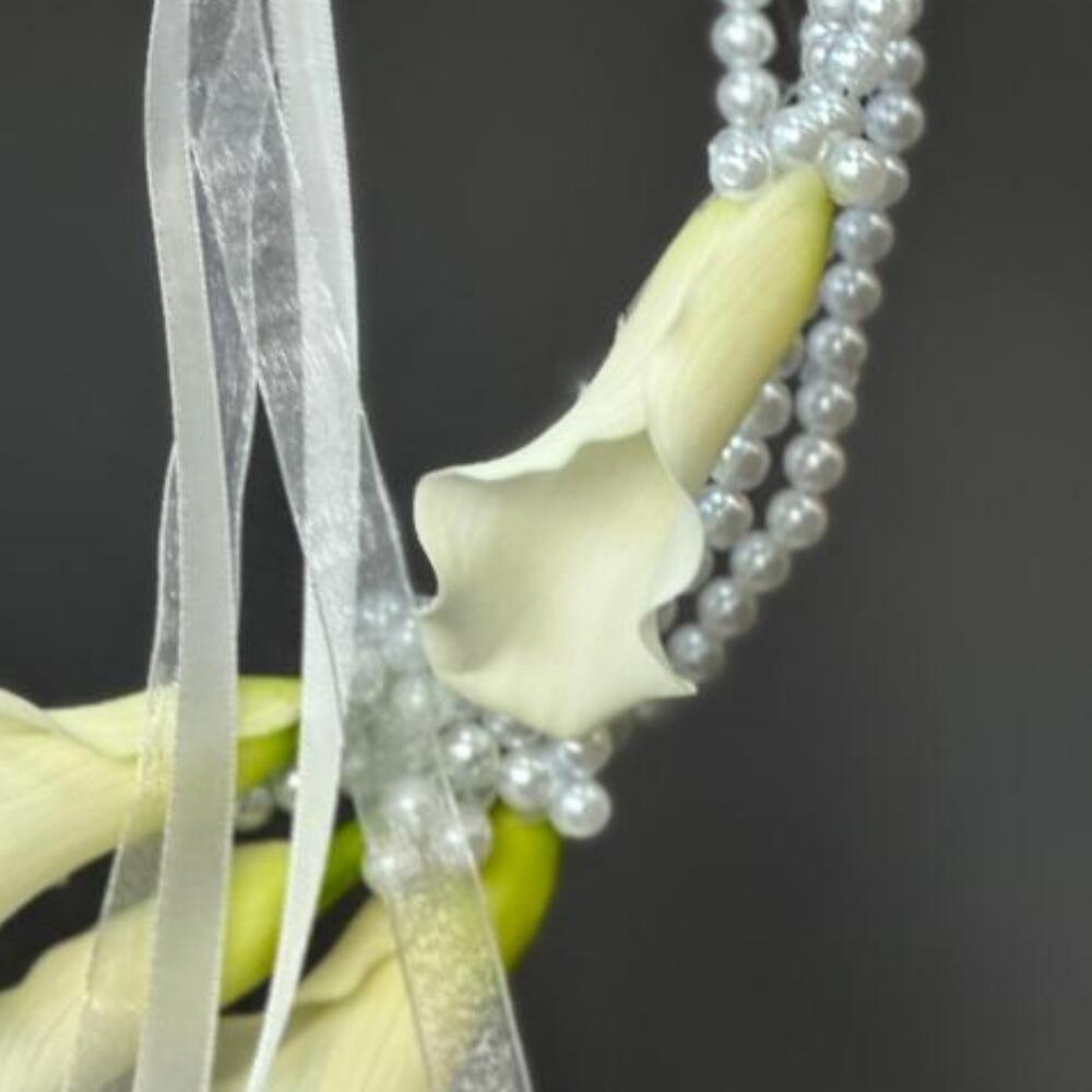 Cu un design elegant și sofisticat, acest buchet este perfect atât pentru o ceremonie tradițională, cât și pentru una modernă. Cale albe, simbolizând puritatea și frumusețea, combinate cu strălucirea perlelor, vor crea o prezentare spectaculoasă care va atrage toate privirile.