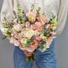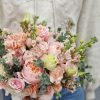 Îmbogățește-ți ceremonia cu un buchet elegant și sofisticat, perfect nu doar pentru mireasă, dar și pentru nașă. Acest buchet în nuanțe sublime de roz și somon este realizat cu atenție din flori delicate, creând o combinație armonioasă și rafinată.