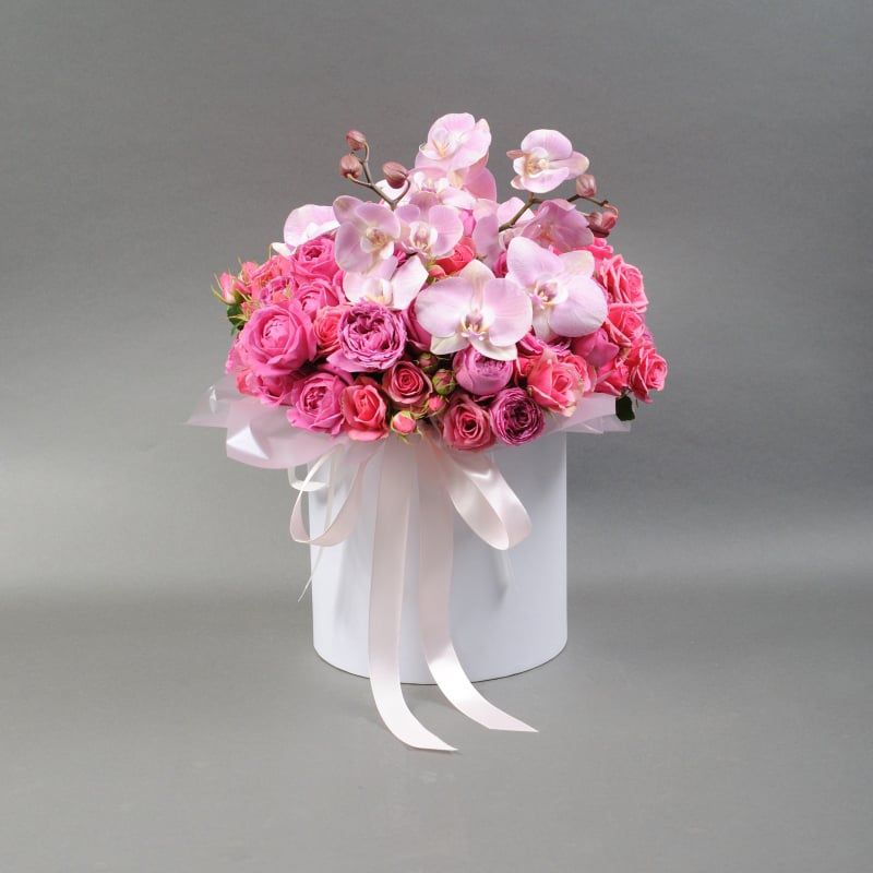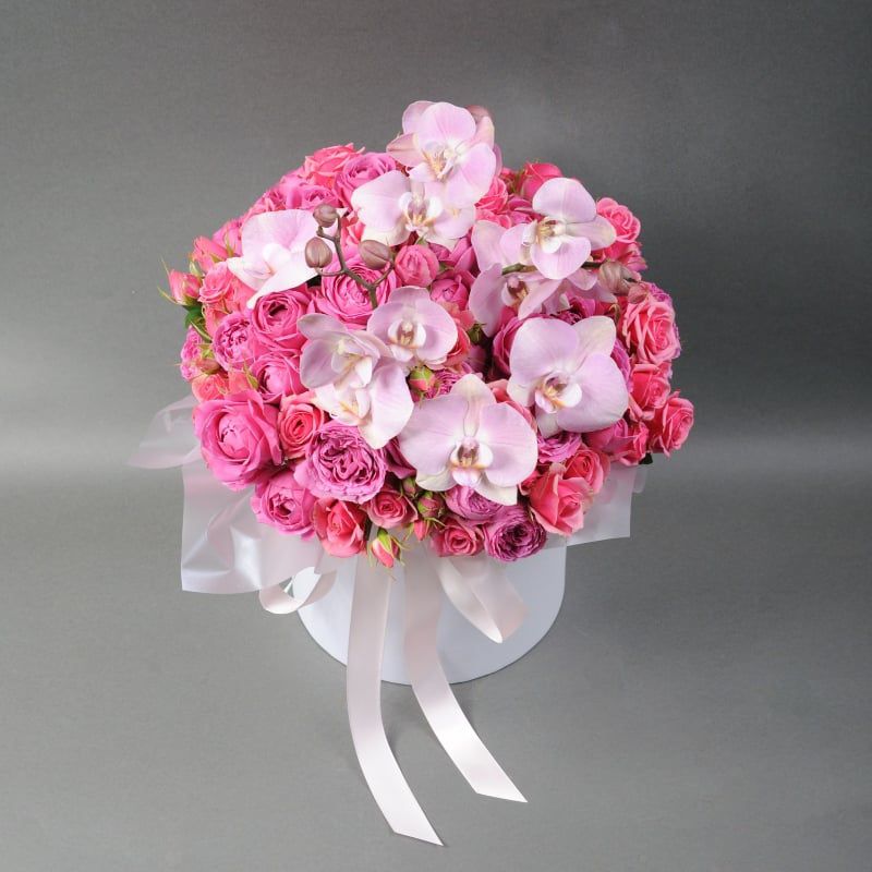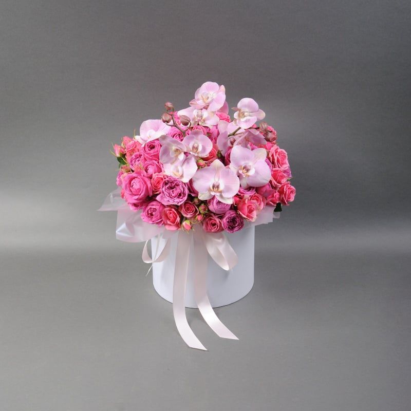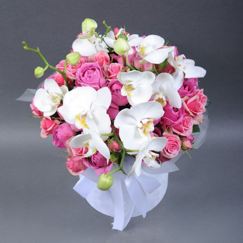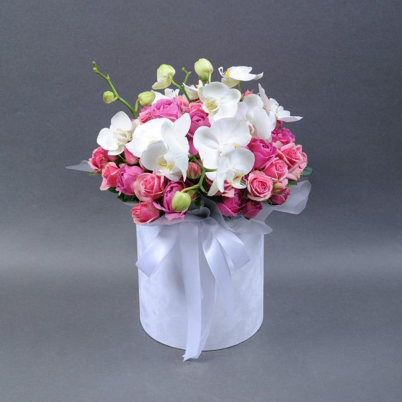 Acest aranjament floral premium îmbină farmecul trandafirilor mini cu rafinamentul orhideelor, rezultând un cadou spectaculos pentru aniversări, onomastici, surprize romantice sau evenimente speciale. Florile sunt așezate într-o cutie elegantă, perfectă pentru un cadou modern și sofisticat.