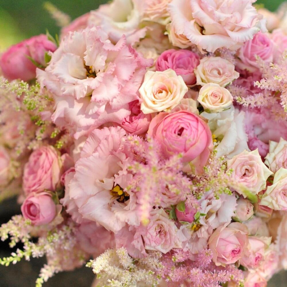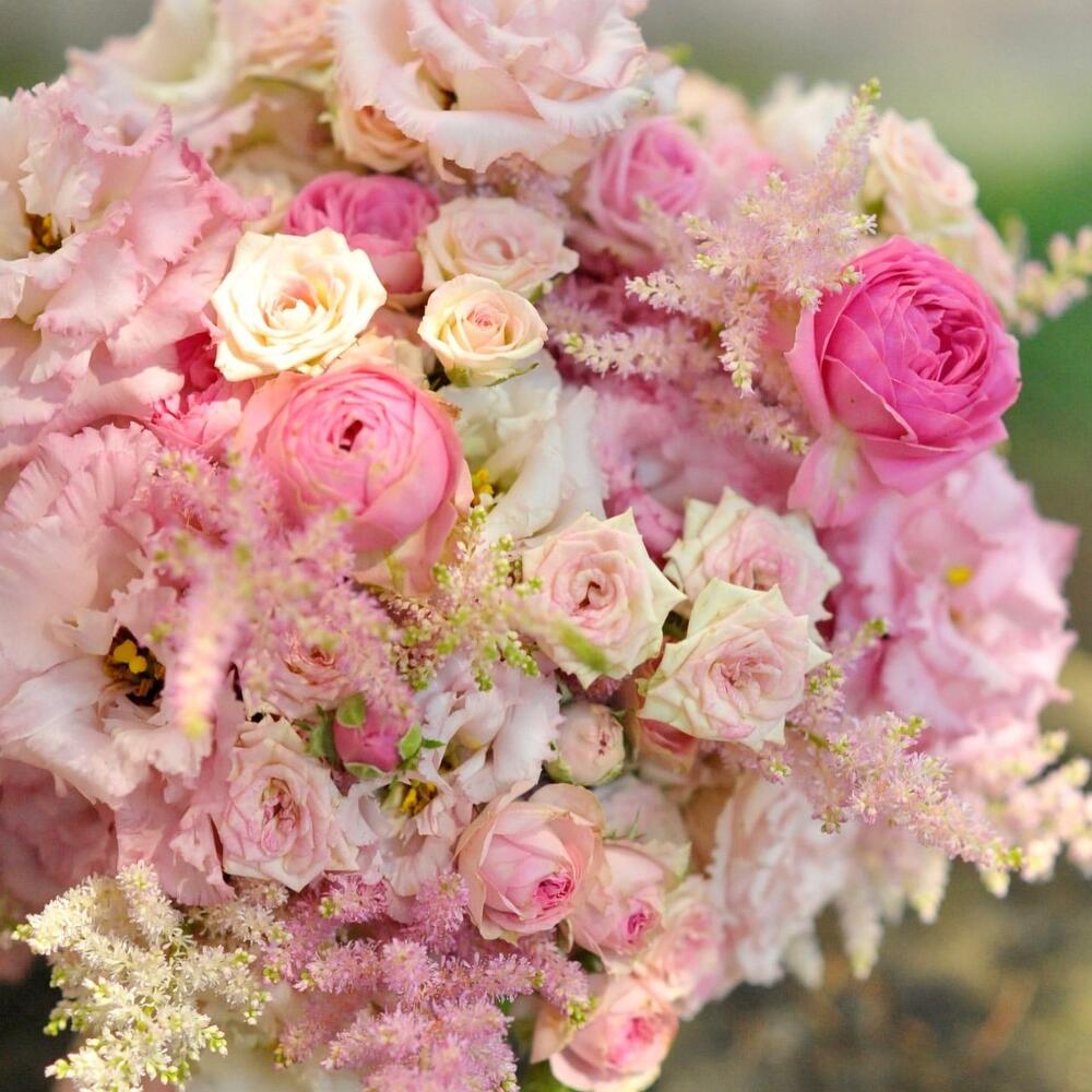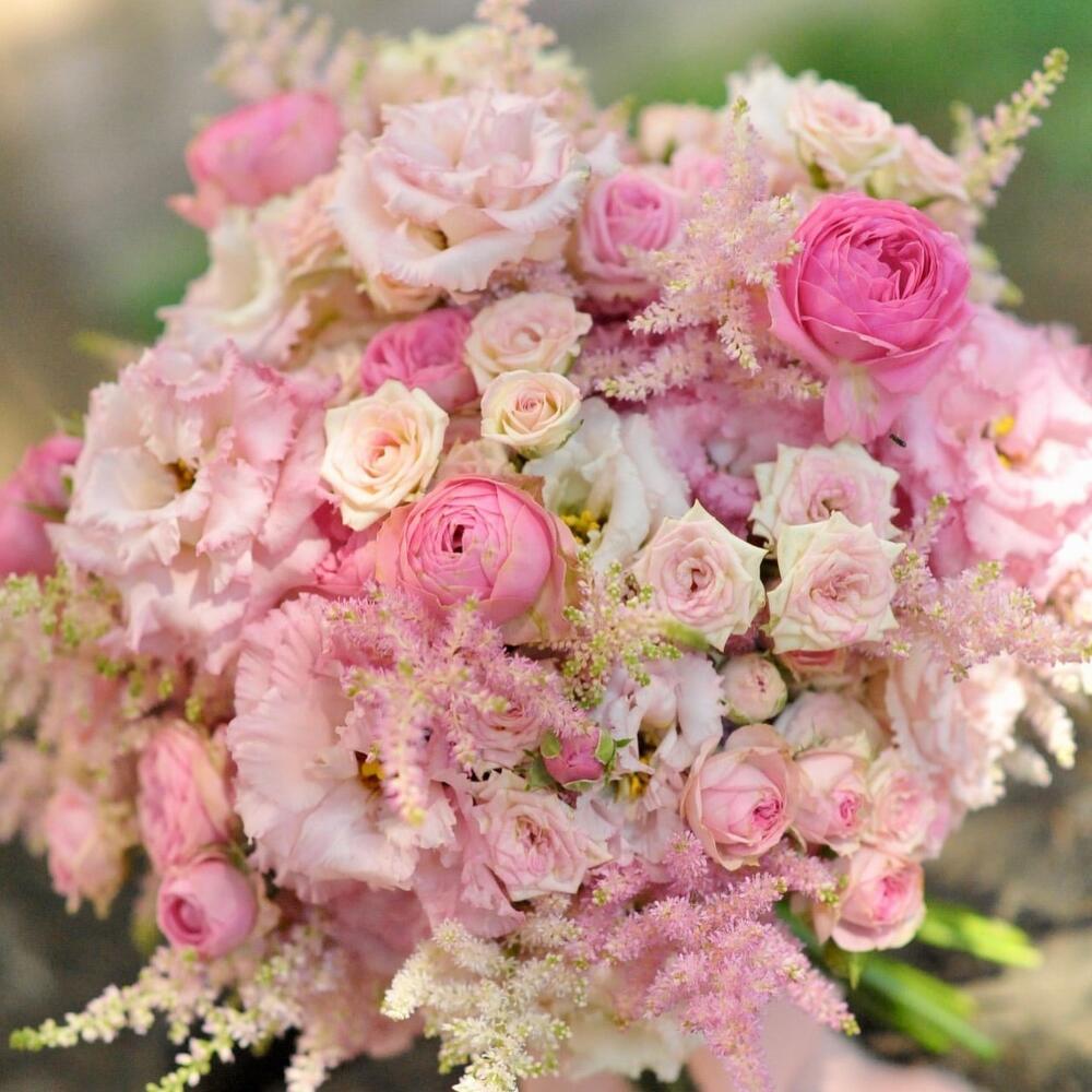 - Astilbia roz: Oferă un accent unic și o textură ușoară, aducând un aer visător buchetului.