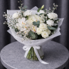Buchetul Premium cu Trandafiri Albi și Orhidee este un aranjament floral elegant și rafinat, realizat din flori proaspete atent selecționate. Combinația dintre hortensia delicată, orhideele Cymbidium și trandafirii albi creează un buchet sofisticat, perfect pentru ocazii speciale, cadouri elegante sau evenimente importante. Textura bogată a florilor este completată de frunze de eucalipt și limonium, oferind un aspect natural și armonios. Acest buchet premium transmite eleganță, puritate și stil, fiind ideal pentru a impresiona prin frumusețea florilor albe.